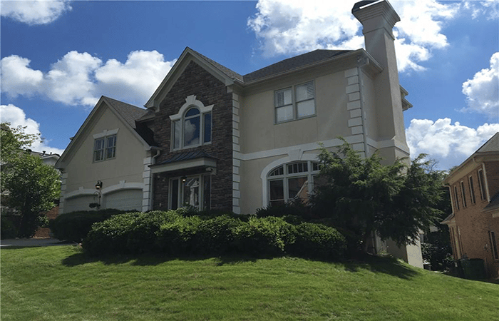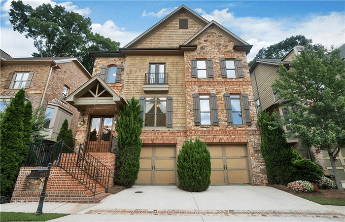 This is an executive retreat in heart of Sandy Springs. It is in a gorgeous, gated community, is four sides brick and stone, is exceptional quality construction and has gleaming oak hardwoods.